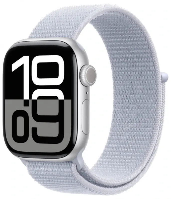 Apple Watch Series 10, 46 мм, серебристый алюминий, спортивный браслет цвета "Blue Cloud"